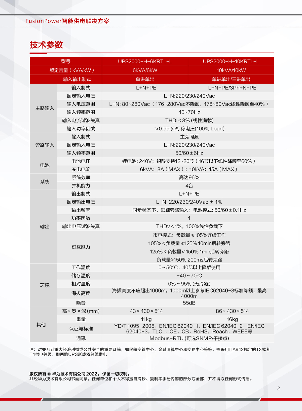 HUAWEI華為 UPS2000-H-10KRTL-L 6kVA~10kVA機架式UPS主機